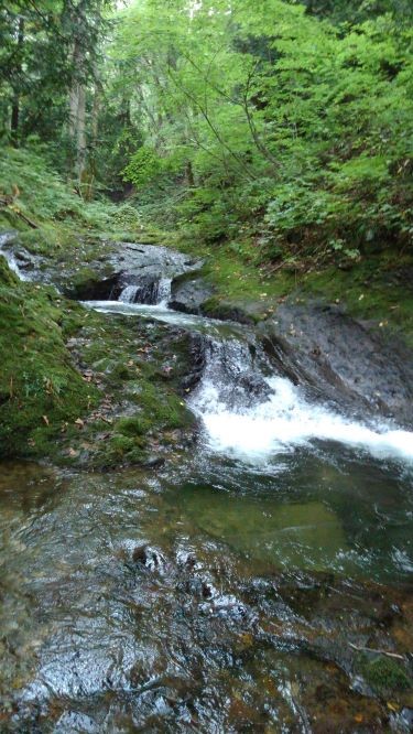 9時半、恐山を後にして、津軽海峡を目指して北上。目の前に津軽海峡が現れる。そこから、西に向かい、大間を目指す。 ここでは、渓流釣りを行う。風間浦村の易国間川だ。町は、お祭りのようで神輿が出ていた。そこをかいくぐり、山道に入っていく。海からの距離はないところでも、ヤマメ、イワナが釣れる。橋の手前に車を停め、渓流に入る。水温が冷たくないのが、気がかり。竿を振り、第1投。あたりはない。勢いよく流れる淵にエサを送り込む。ガツガツっと、あたりがある。合わせると、7pほどのきれいなイワナ。小さいのでリリース。大きいのがいると期待して竿を振る。しかし、小さいイワナばかりがかかってくる。これではどうしようもないので、川を替えて、再度挑戦。海から1キロくらいしか離れていないところだが、良さそうなポイントがあるので、竿を出す。第1投目からあたり。だが、掛からない。少しポイントを変えると掛った。引きは良いが上がってきたのは、10p程度のヤマメ。これもリリース。 続くもやはり小型。すべてリリース。20p以上の型がでないので、16pくらいのを1尾確保して、早めに切り上げる。前回の佐渡での渓流釣りもそうだったが、下北半島もイワナ、ヤマメは良型が出るところだが、入った川がよくなかったのか、よい二つの場所ともによい成果が得られていない。